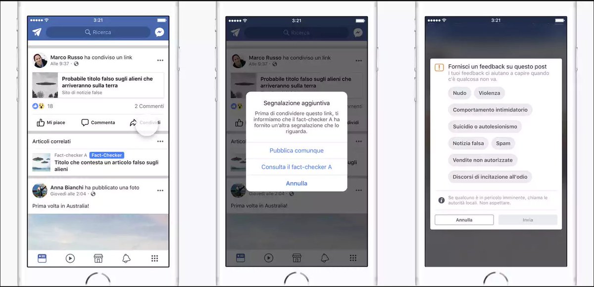 To combat this, Facebook has rolled out a fact checking warning that alerts people when they try to share an article flagged as false by fact checkers. The warning allows you to “Share anyway” or click a link to consult the fact checker that has flagged the article.