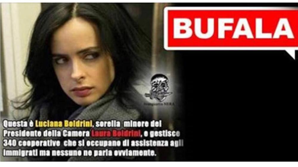 Finally, ending this thread are some example fake stories. The image here claims that this person is the sister of journalist and politician Laura Boldrini and has been secretly assisting immigrants in Italy. The person pictured is Krysten Ritter, star of Netflix’s Jessica Jones.