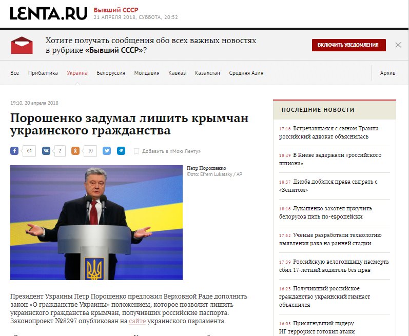 Finally, to end this week’s #FakeNews thread, some examples fake news stories from Ukraine in Ukrainian, Russian and English. Translations in turn: “Poroshenko plans to deprive Crimeans of Ukrainian citizenship”; “Ukraine detains Russian seiner in the Seas of Azov”.