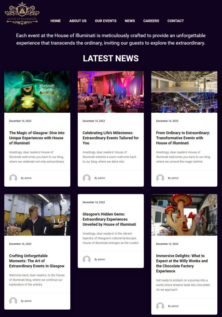 House of Illuminati’s website offers some insights into the services they offer, including ‘unique experiences’, ‘unforgettable moments’ and ‘transformative events’: